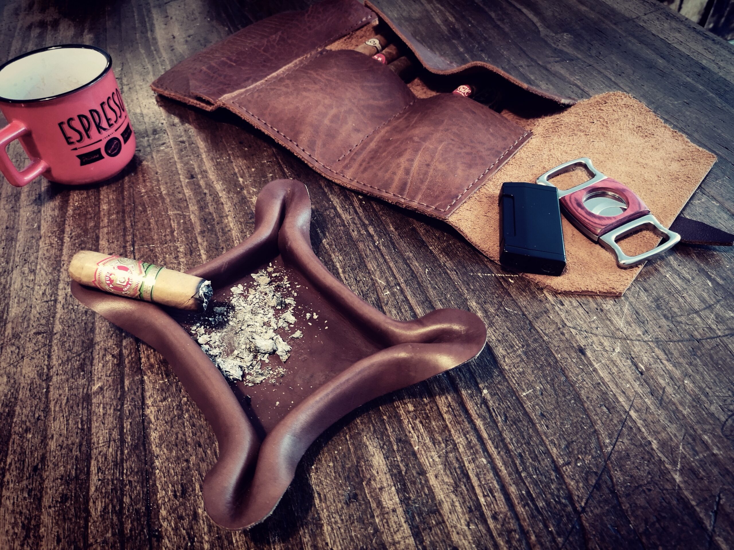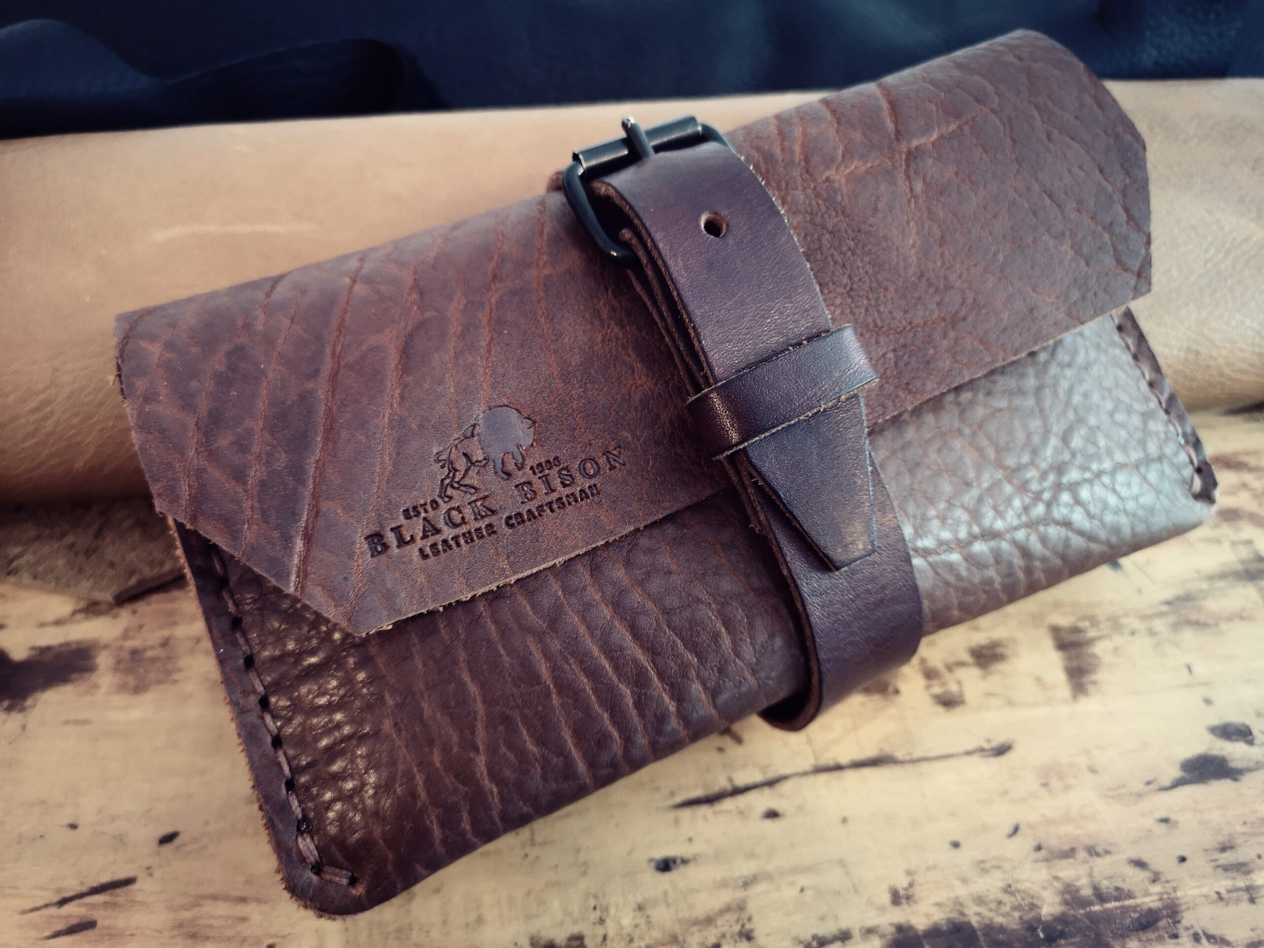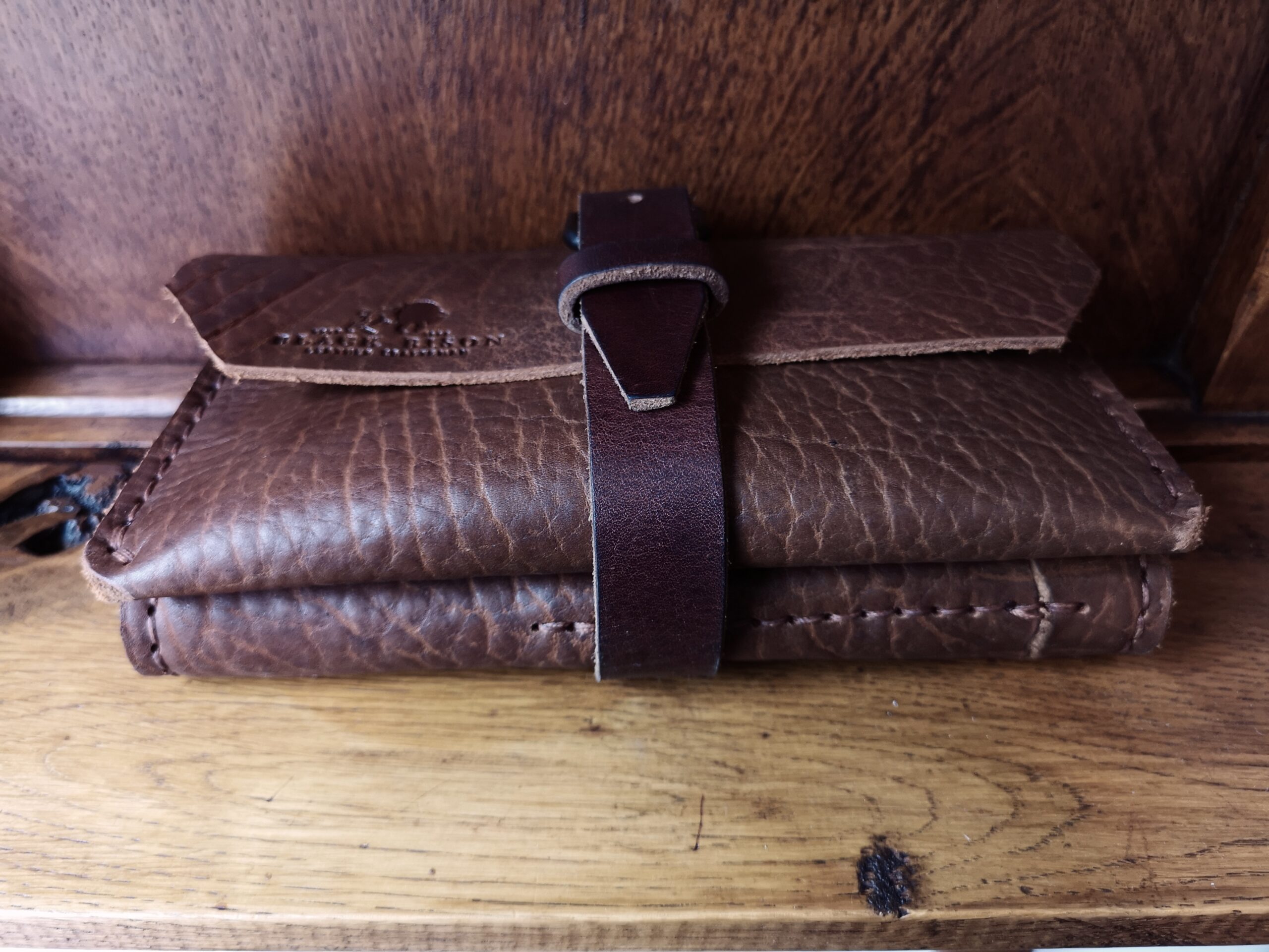 Le TOBACCO BISON Cette pochette en cuir de BISON d’Amérique du Nord s’adapte à vos cigars et pipes et aux effets habituels.Elle est coupée à la main et cousu à la main en utilisant du cuir tanné à l’huile de haute qualité. Apportez votre pipe ou Cigar et votre kit avec classe au fumoir avec ce rouleau en cuir de qualité. Peut être utilisé comme rouleau utilitaire et convient parfaitement aux pinceaux d’artistes, aux stylos, aux outils ou aux articles de tous les jours comme les montres et les objets pointus, etc. Cuir tan huilé de haute qualité 2/2,5mm d’épaisseur. Poche intérieure pour le tabac.